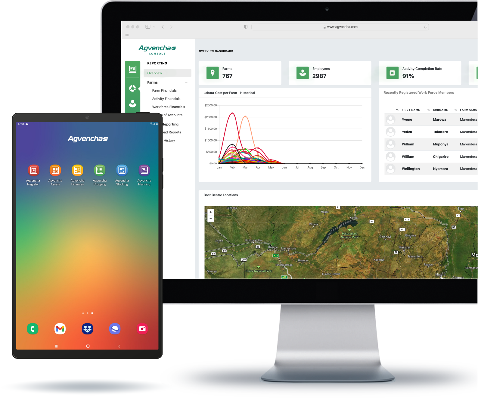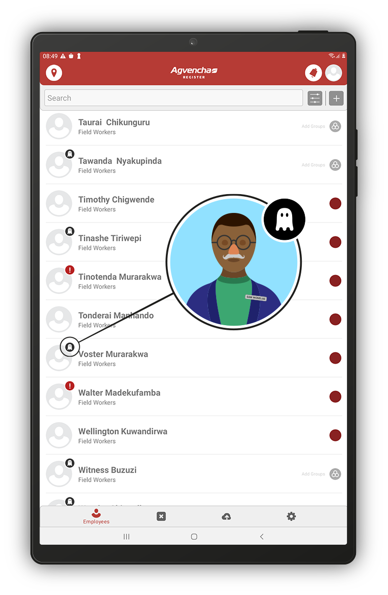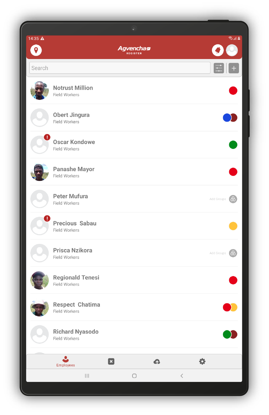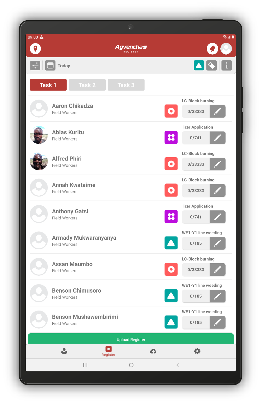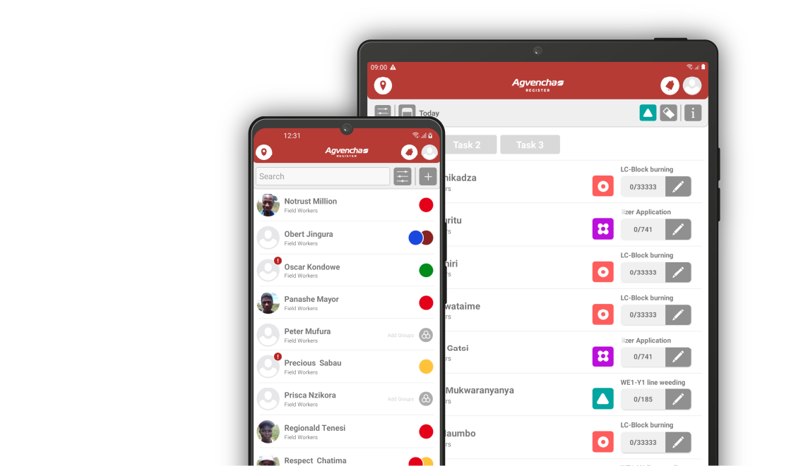 The Agvencha Register mobile application has been designed to keep track of the farm workforce. The application is used to add new employees, input employee attendance and task execution, identify possible ghost workers, generate monthly payroll and more.