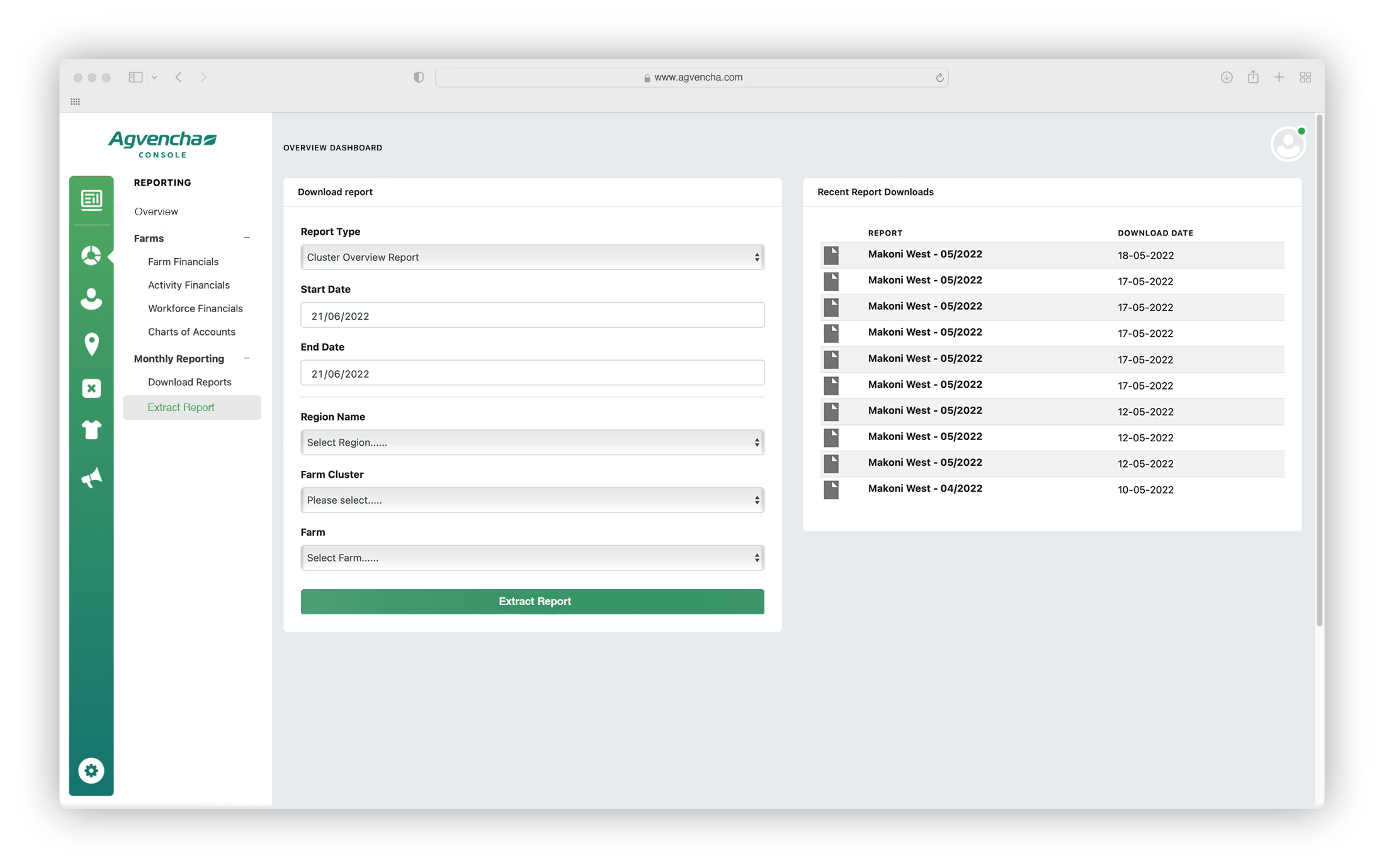Download monthly reports that outline the performance of your operations. These reports are set by date and can be broken down by farming location, cluster of farms or by region.